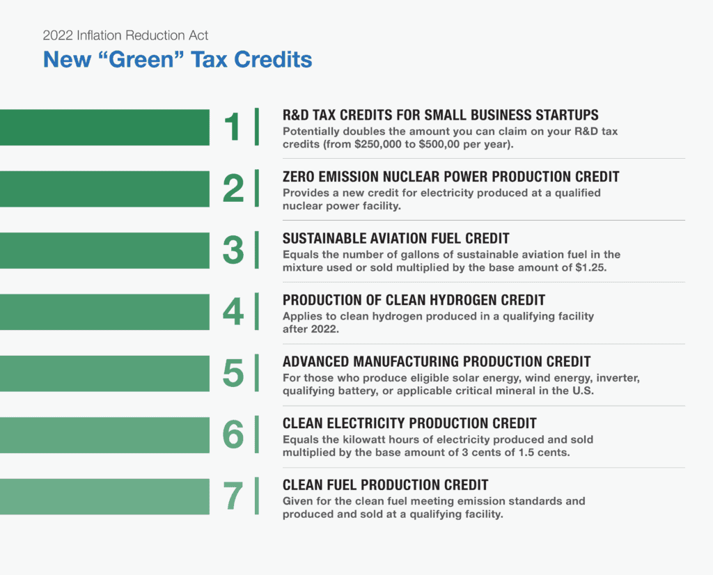 On August 16, President Joe Biden signed the Inflation Reduction Act (IRA) of 2022 into law. Within the large tax reform package are numerous “green” tax credits focused on providing financial relief to taxpayers while incentivizing them to make sustainable choices and combat climate change.
