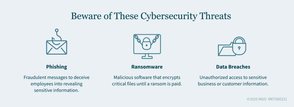Cybercriminals often target small- and medium-size businesses, leveraging sophisticated tactics to exploit vulnerabilities. Here are three of the most common threats: