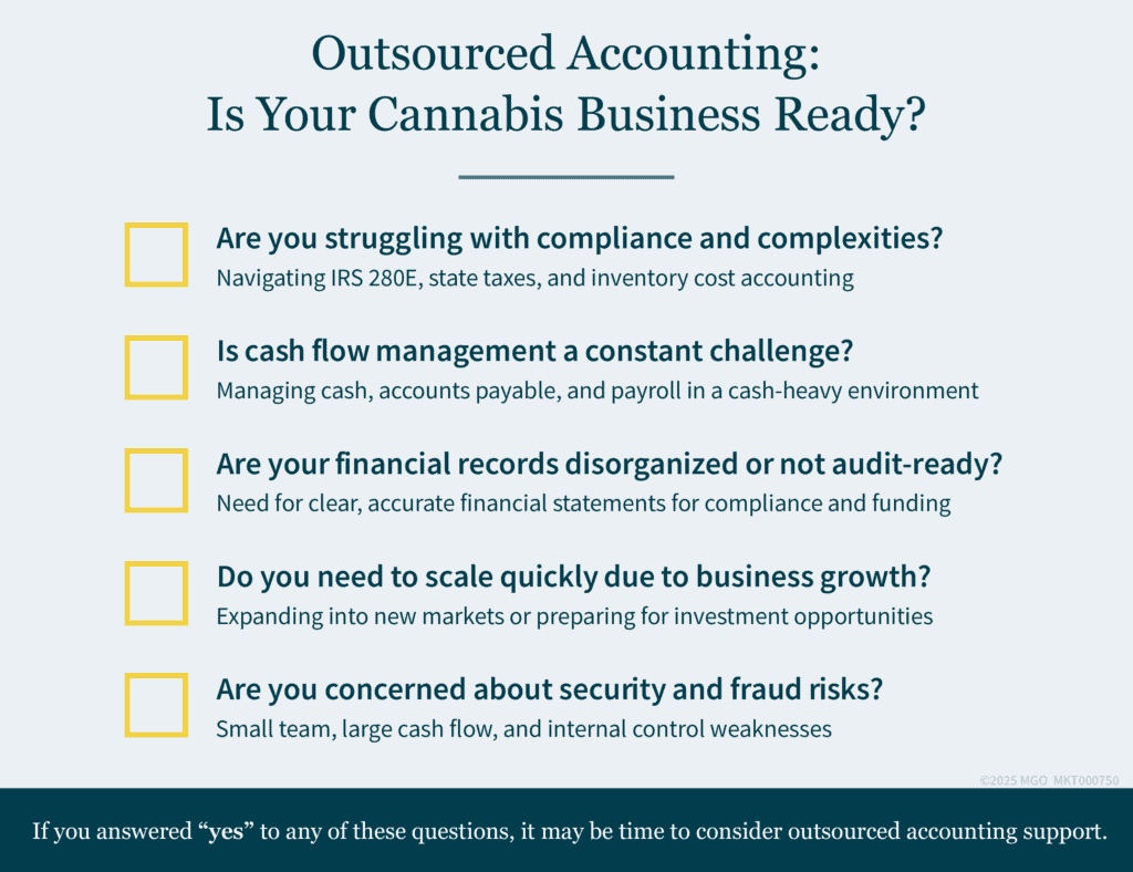 Here are key signs that outsourced accounting could be the best next step for your cannabis company: