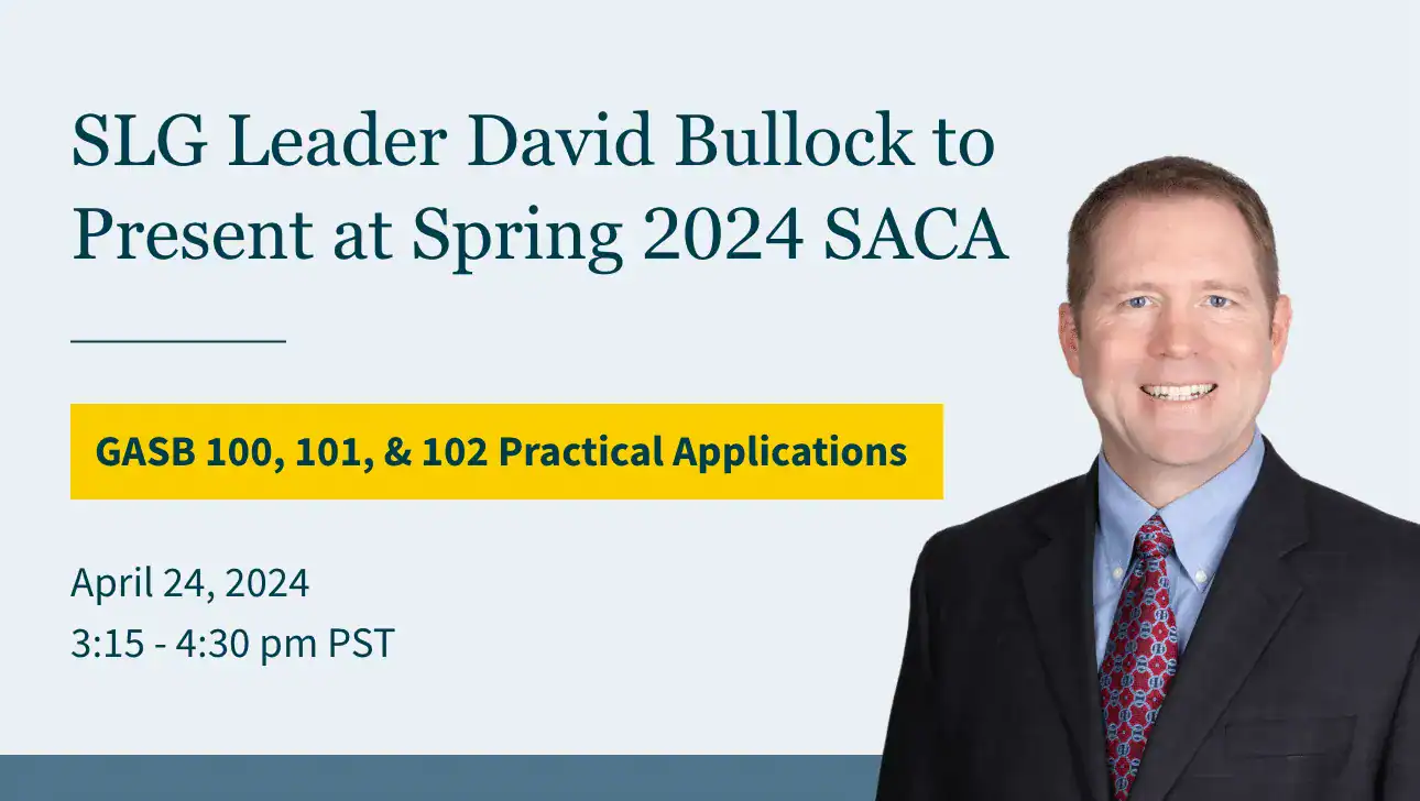 In addition to attending the event, MGO SLG practice leader David Bullock will be presenting at the conference. David will be speaking on the topic “GASB 100, 101, and 102 Practical Applications” on Wednesday, April 24.