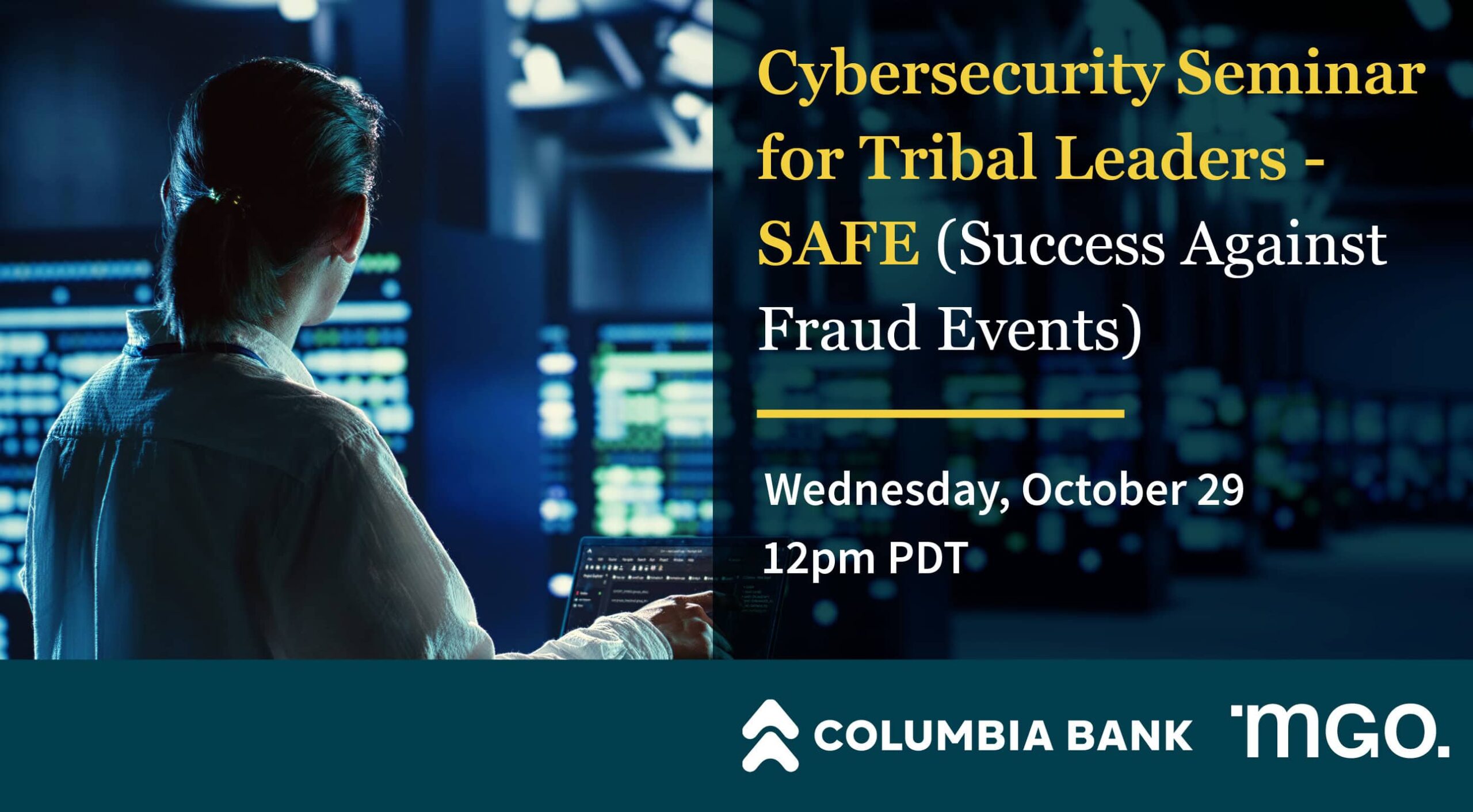 The Cybersecurity Seminar for Tribal Leaders – SAFE (Success Against Fraud Events), led by MGO and Columbia Bank, provides actionable insights into fraud prevention, incident response, and federal funding opportunities — tailored for Tribal leadership.