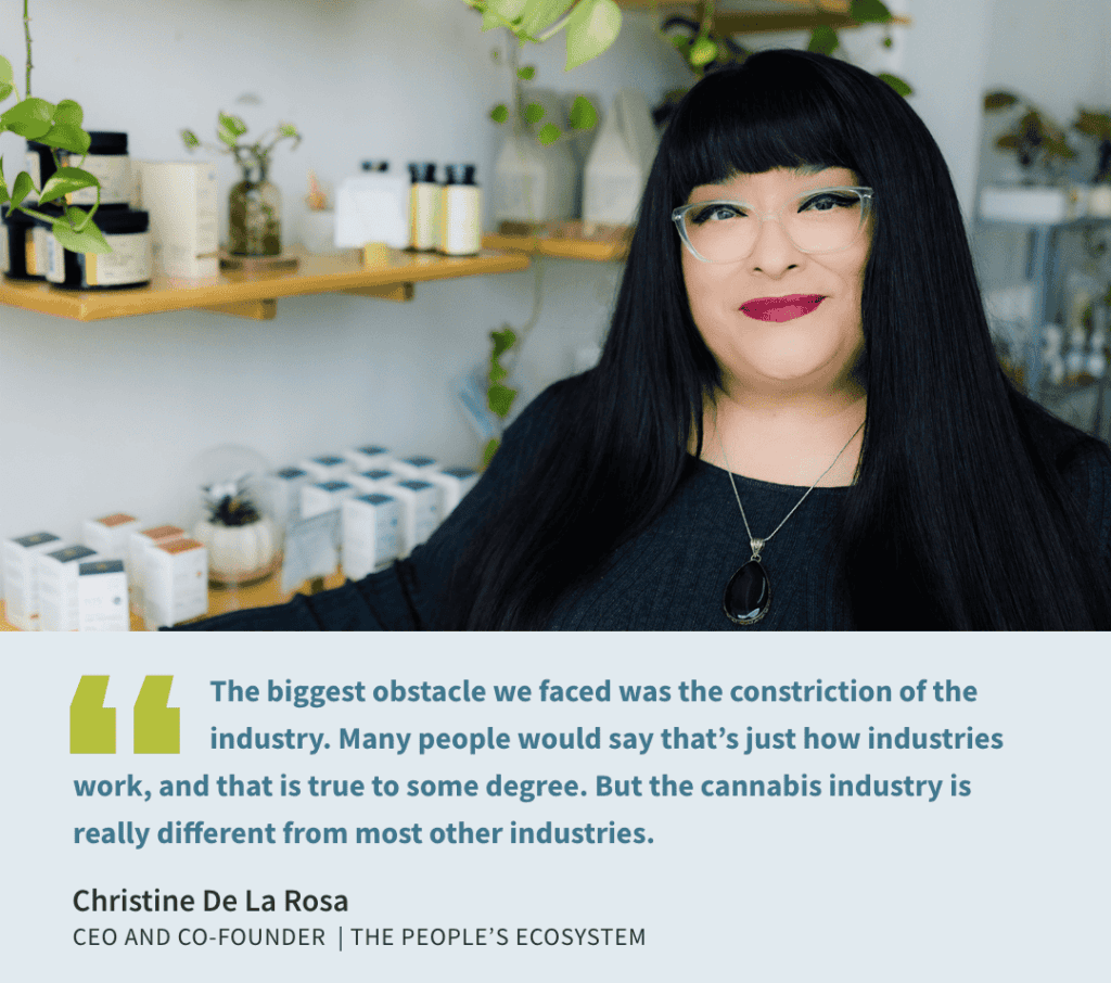 As a Latina woman whose company, The People’s Ecosystem’s, leadership is primarily comprised of people of color and women, Christina De La Rosa understands how important it is to challenge stereotypes and speak directly to underserved minority consumers. She’s been tireless in her pursuit of widespread diversity, equity, and inclusion, advocating for BIPOC cannabis representation, as well as more easily accessible capital. The founding and managing member of The People’s Group, founder of The People’s Dao, and The People’s Ecosystem, she also serves on the California Cannabis Advisory Committee and the New York Cannabis Industry Association Special Advisory Group for Social and Economic Equity and Social Justice.