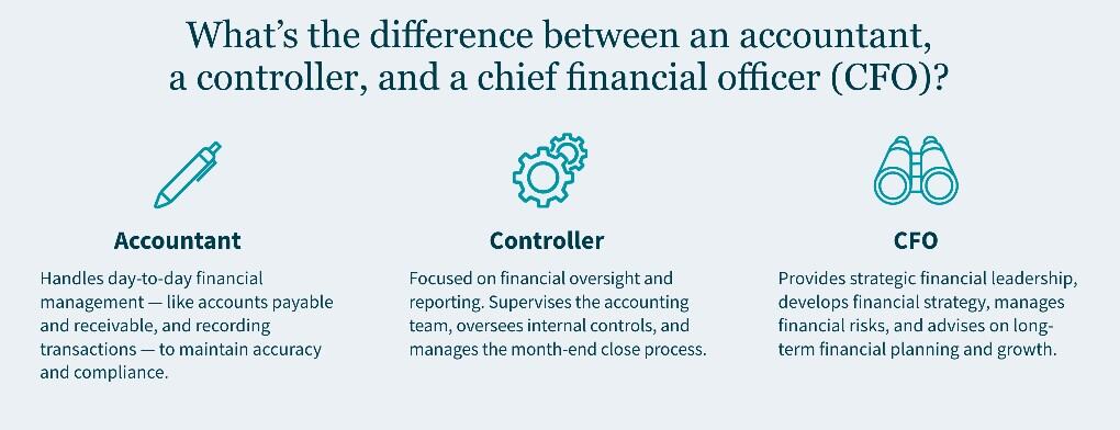 Infographic of the difference between an accountant, a controller, and a CFO.