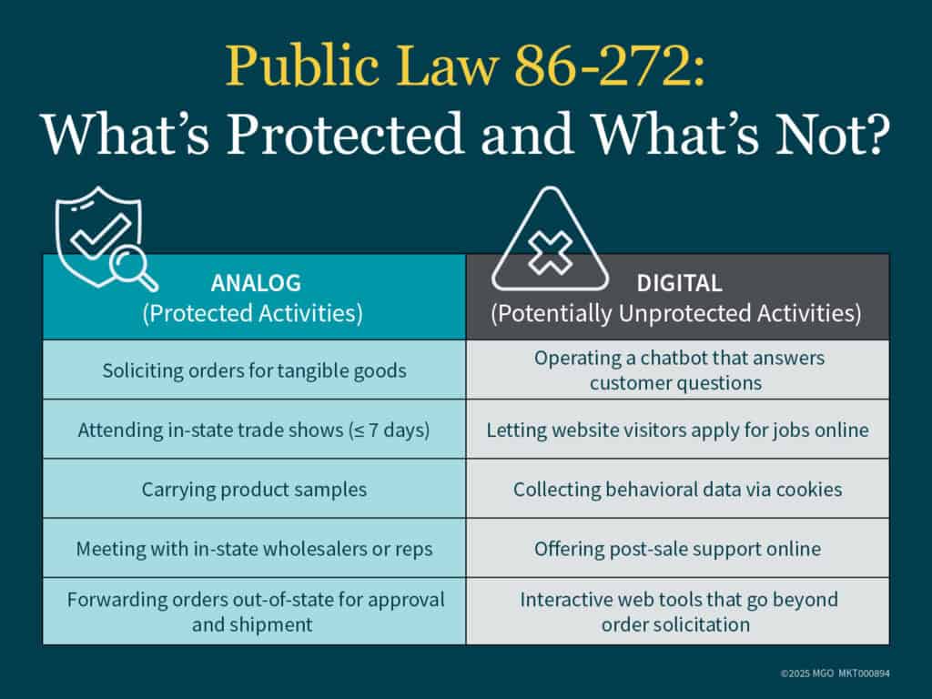 However, commerce has evolved since the 1950s. Business models today often blur the lines between physical presence and digital engagement. And in this increasingly digital marketplace, states are re-evaluating what it means to “solicit orders” and what activities should fall outside the protections of P.L. 86-272.