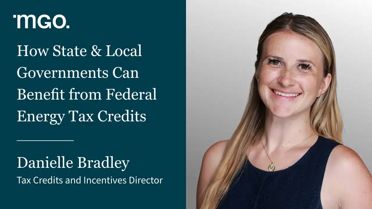 MGO Tax Credits and Incentives Director Danielle Bradley details how state and local governments can benefit from federal energy tax credits: