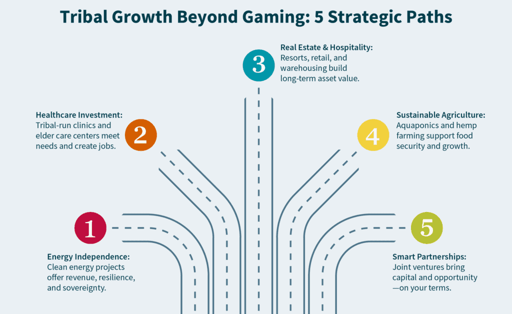 As your Tribal enterprise looks beyond gaming, the question becomes not just why diversify but where to begin. The strongest opportunities are those that reflect your community’s values and build on your strengths — your land, your people, and your sovereignty.