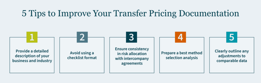 To navigate this heightened scrutiny, taxpayers must take a proactive approach to document pricing transfer decisions. Steps you can take to avoid commonly seen inadequacies include: