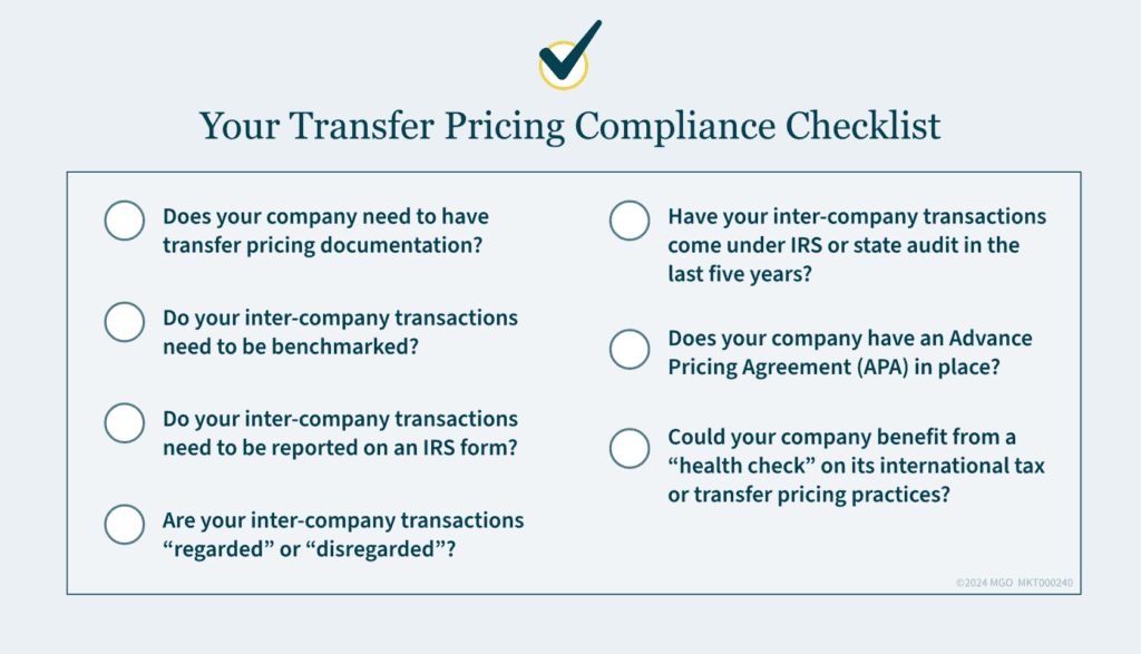 - Businesses operating internationally should regularly review transfer pricing practices — including documentation, benchmarking, and IRS reporting requirements.
