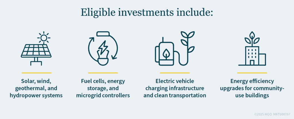 At MGO, we work with Tribal governments and enterprises to assess project eligibility, navigate clean energy tax credits, and support long-term community planning. Learn more about our work with Tribal nations.