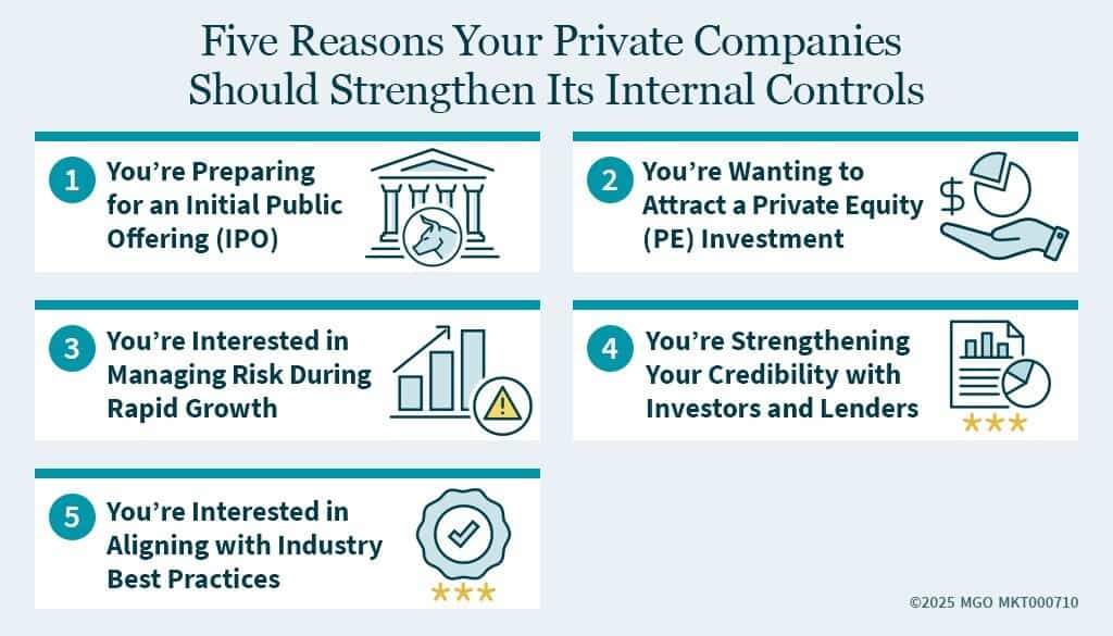 Private companies face increasing stakeholder scrutiny around accountability, risk management, and financial integrity. Those that proactively adopt stronger internal controls prove long-term strategic thinking, preparing for potential transitions such as an IPO, sale, or industry regulatory changes.