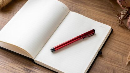 Open notebook with red pen on wooden desk, symbolizing professional financial planning and consulting services offered by MGO CPA.