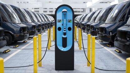 Modern electric EV vans charging in parking garage