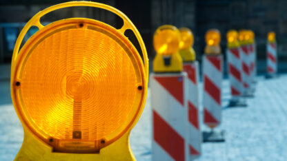 Warning lights at a construction site on the street